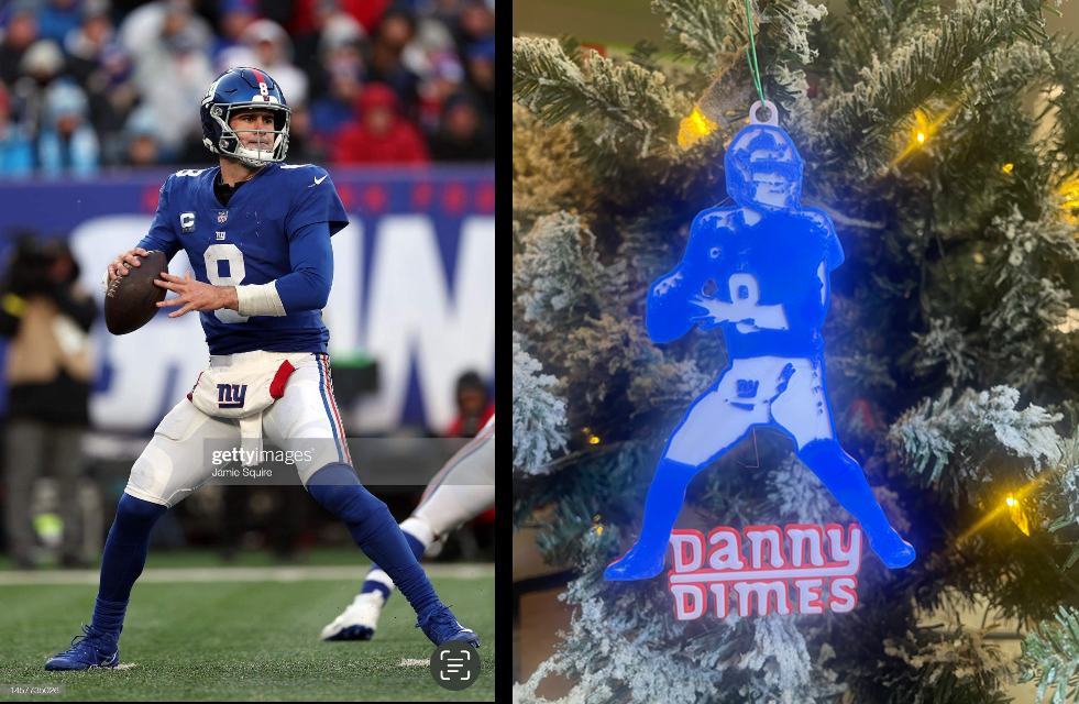 A custom Ornament order for the guy's favorite Football player and the image he provided |
